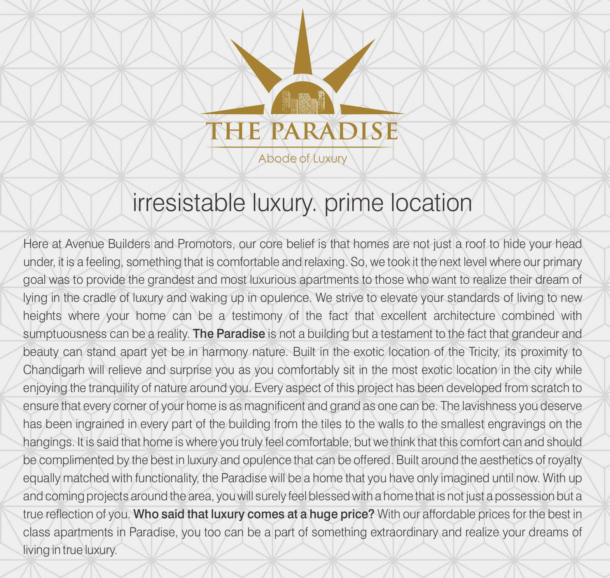 Disclaimer : It's not an official page of Company (Trident, Panchkula). This website is meant only for information purposes. This website belongs to Authorised Marketing Partner - Sarvottam Real Estates, Sector -85, Mohali.